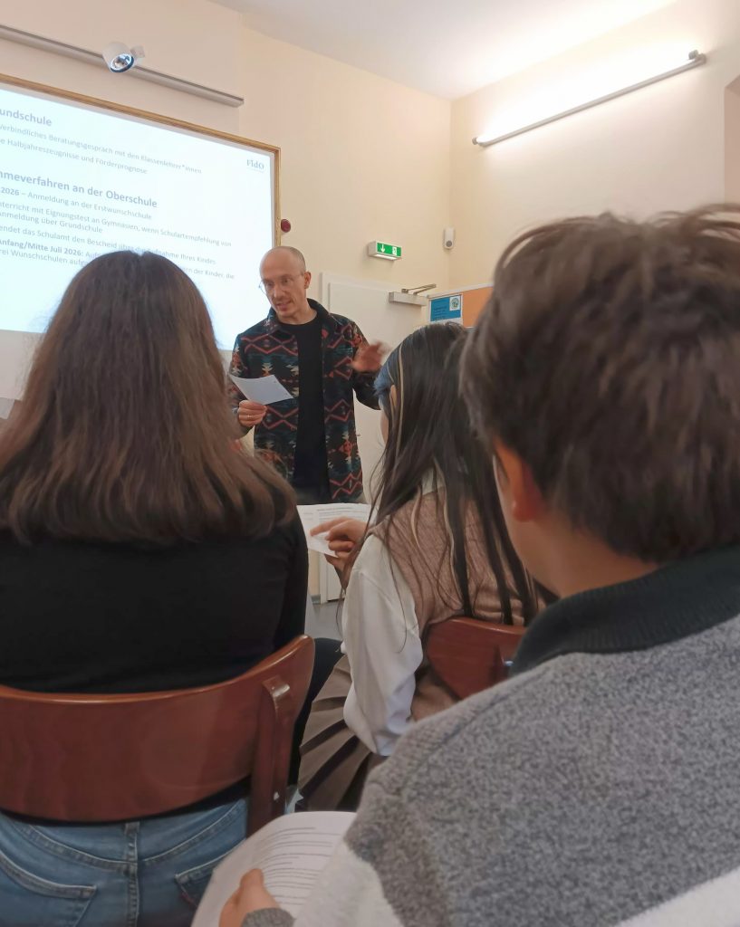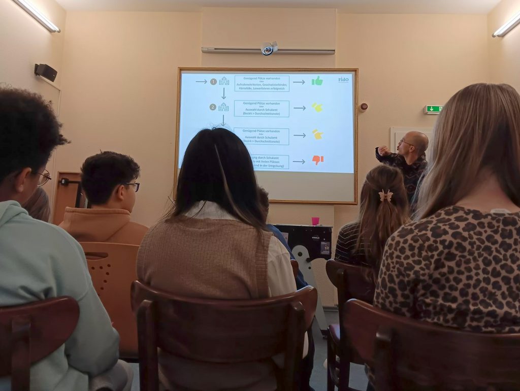 Während unseres Workshops beschäftigten sich die Schüler und Schülerinnen mit dem Übergang in die weiterführende Schule. Sie gingen den Fragen nach, wie: Wie errechnet sich mein Durchschnitt? Was muss ich bei meinem Erst-/ Zweit-/ Drittwunsch beachten? Wie läuft das ganze Verfahren ab? Wie kann ein Bewerbungsgespräch an der Schule ablaufen? Welche Schule passt zu mir?